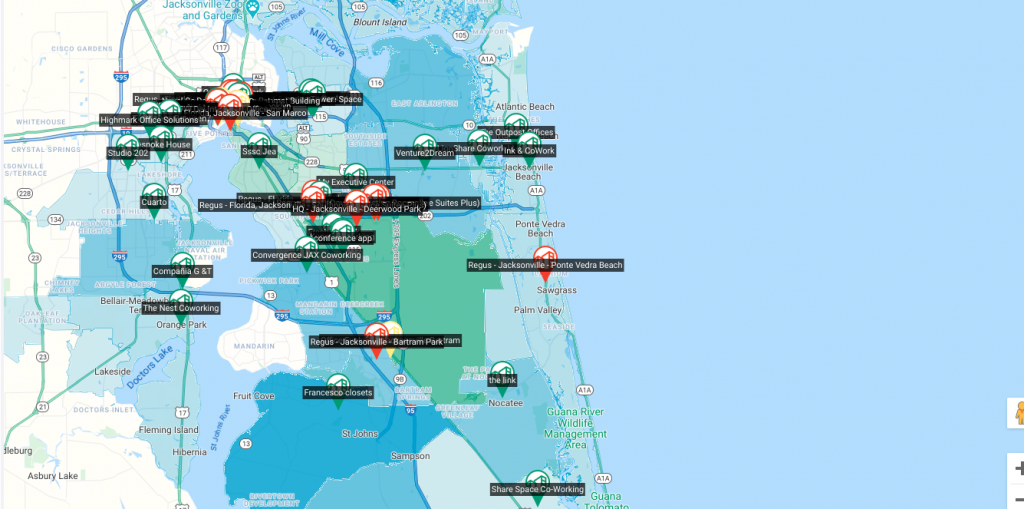 Do you own a building or have ever looked at expanding into Jacksonville, Florida? This week we used our Coworking Analytics Engine and found neighborhoods we'd avoid, several that are OK, and one that would be a home run.